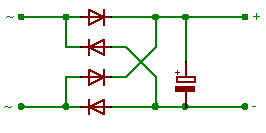 | 05:19, 10. Mai 2006 | 266 × 133 (2 KB) | HaJo Hachtkemper (Diskussion | Beiträge) | Gleichrichterbrücke mit Siebkondensator |