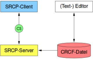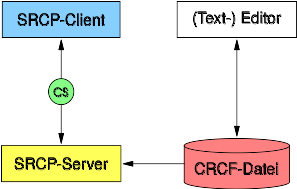 Version vom 25. Juli 2007, 18:21 Uhr von Guido Scholz (Diskussion | Beiträge) (Schemazeichnung zum Nachrichtenfluß beim alten CRCF-Konzept, als svg-Datei)