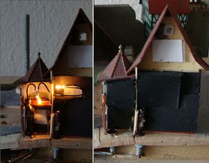 Mit 4mm Bananensteckern beleuchtetes Halbreliefhaus